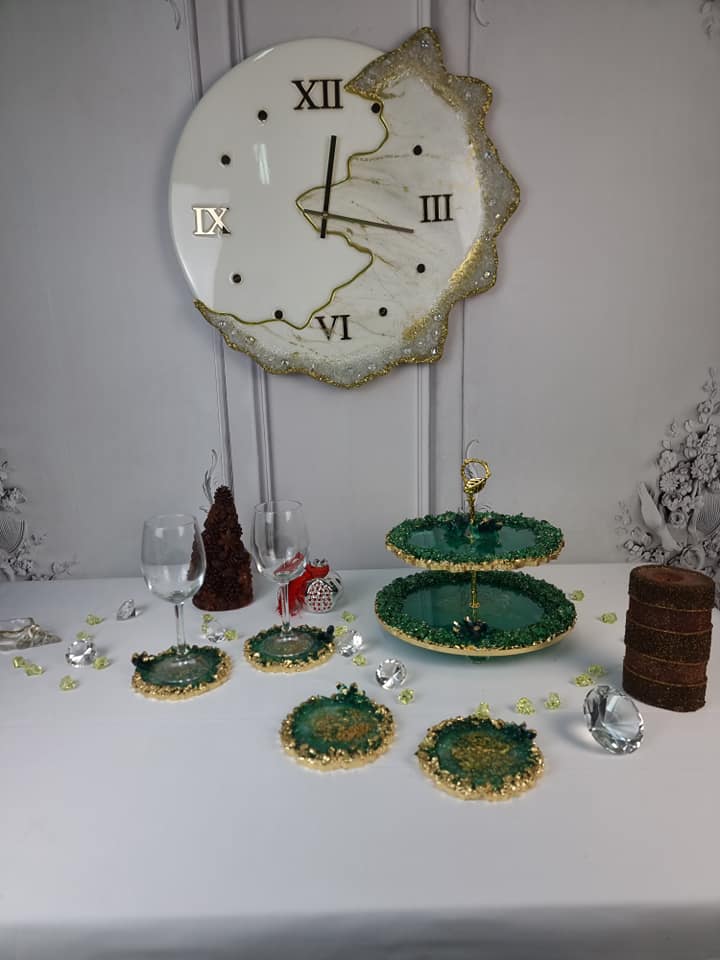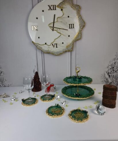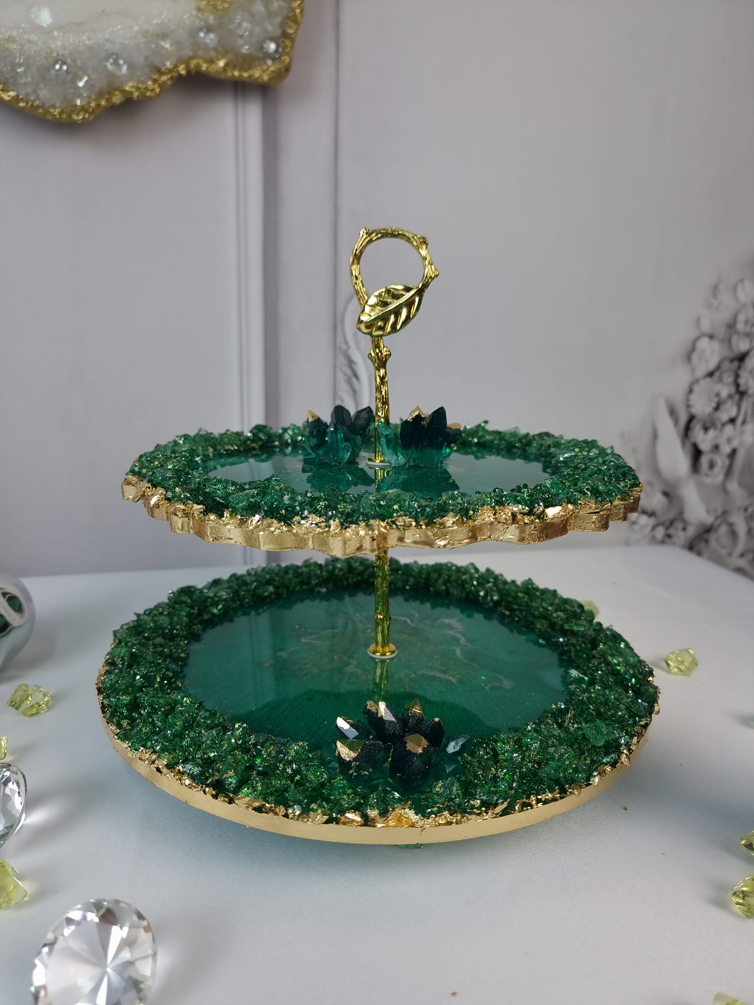 Χειροποίητη Διώροφη πιατέλα “Μαλαχιτης”