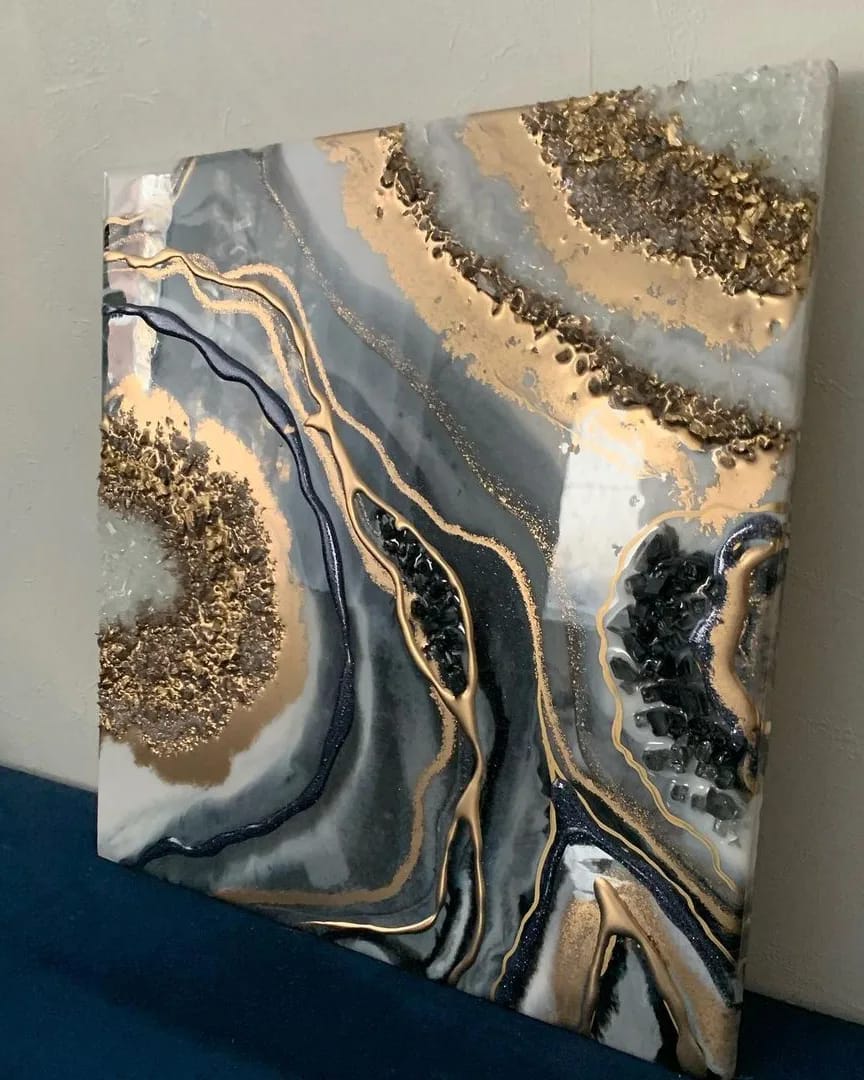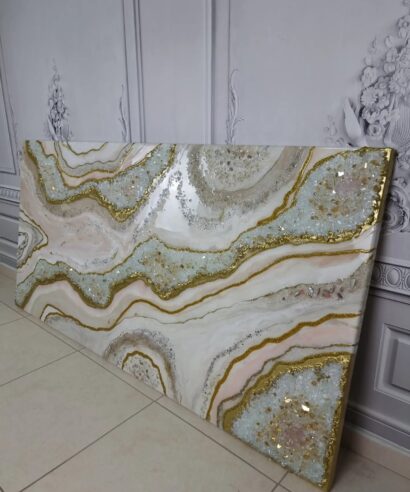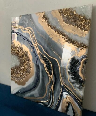 Χειροποίητος Πίνακας με επιφάνεια από υγρό γυαλί και κρύσταλλα