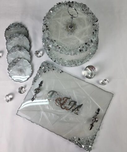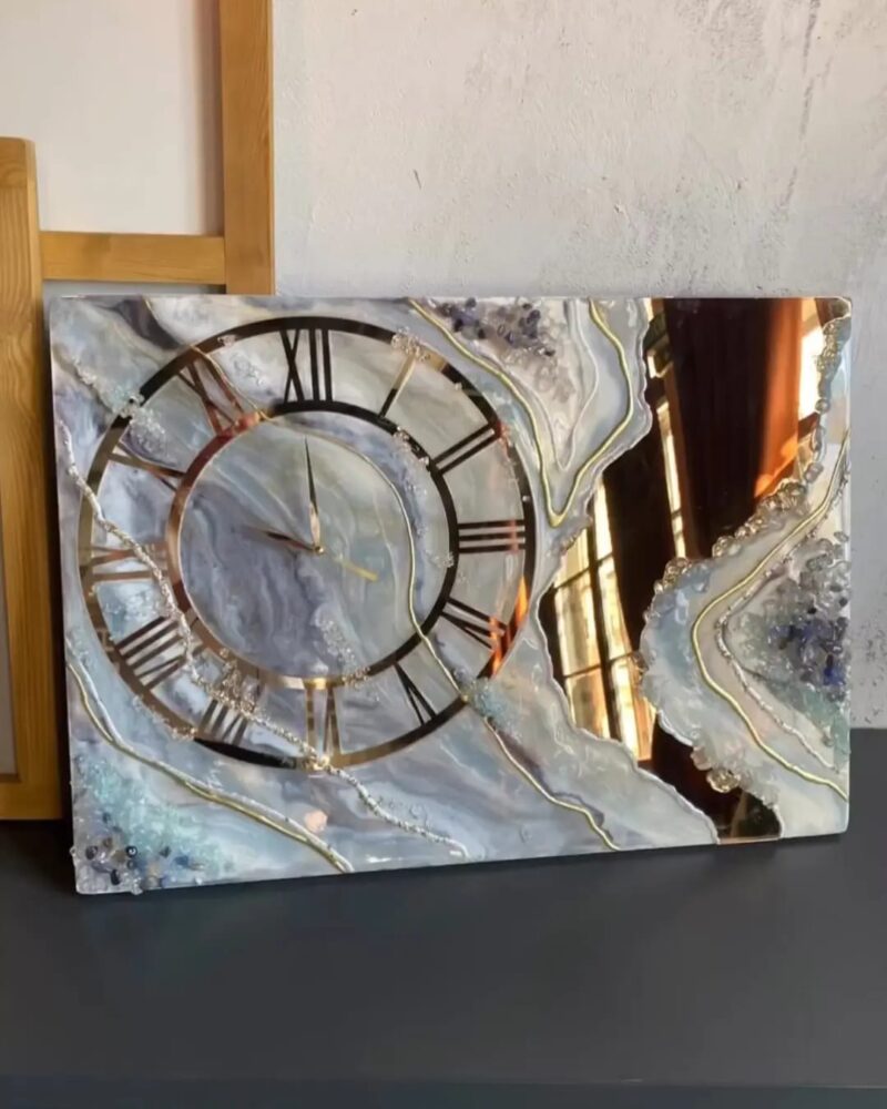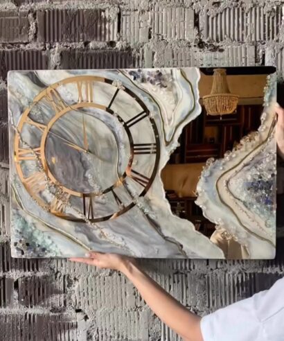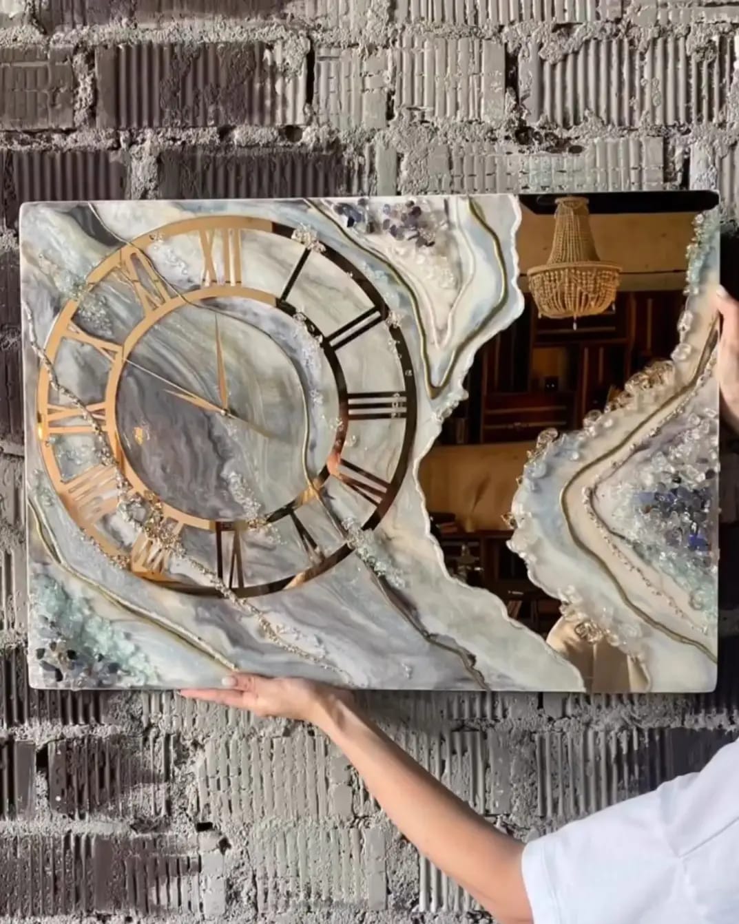 Ρολόι Τοίχου με επιφάνεια από υγρό γυαλί, καθρέφτες, κρύσταλλα και ημιπολύτιμους λίθους