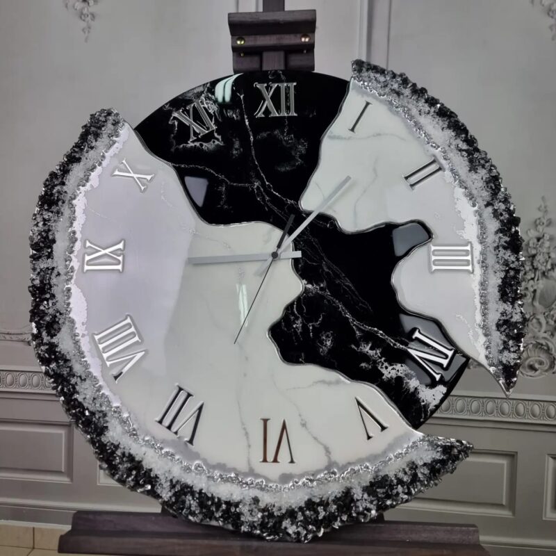 Ρολόι Τοίχου σε Στυλ Geode Obsidian Frost 60x80