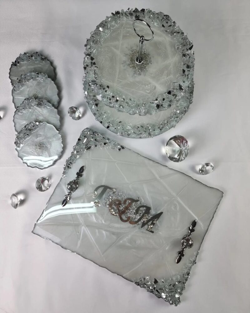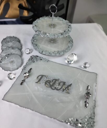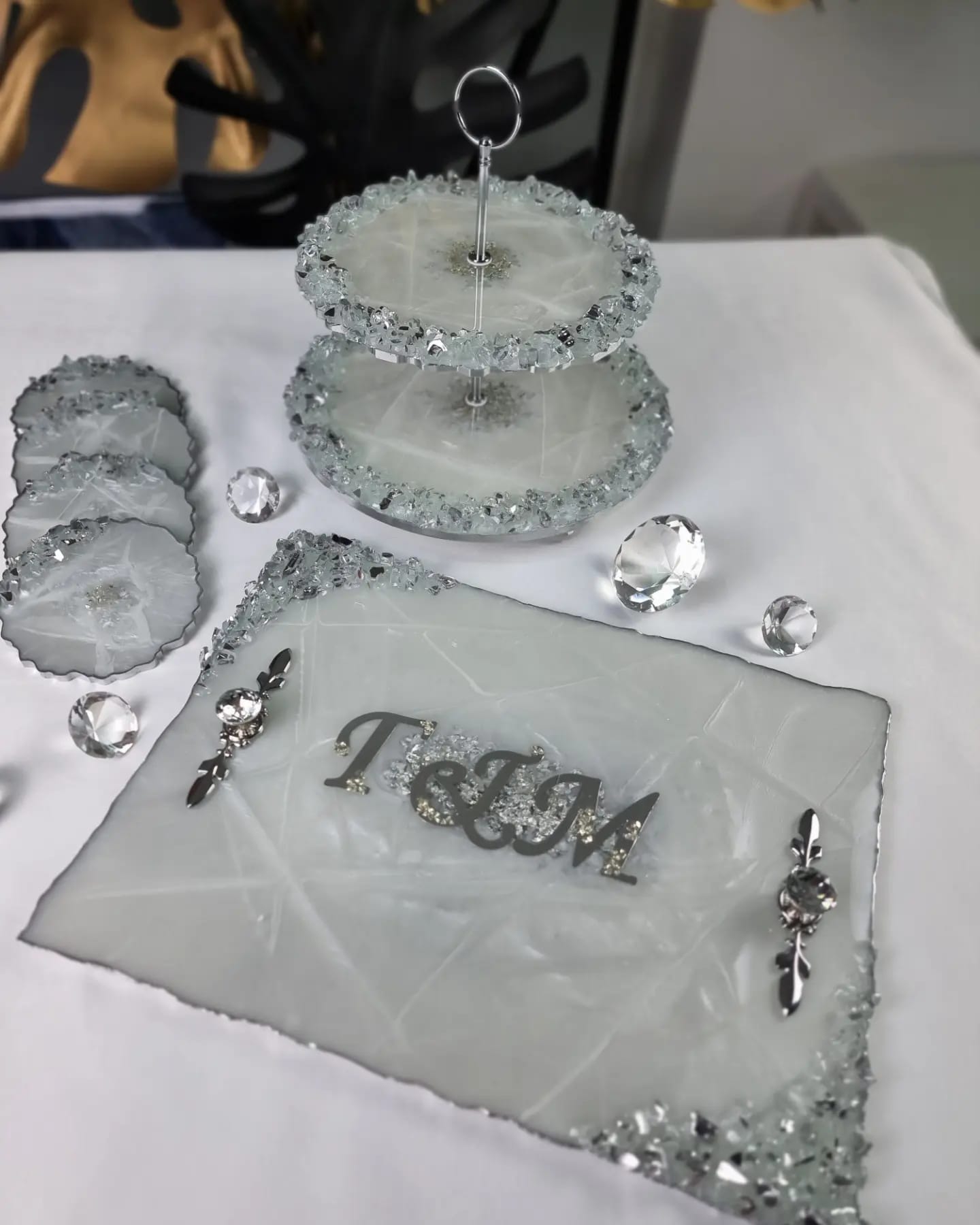 Σετ περιλαμβάνει Διώροφη πιατέλα, Δίσκο και τέσσερα σουβερ.