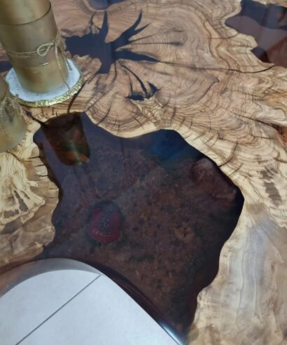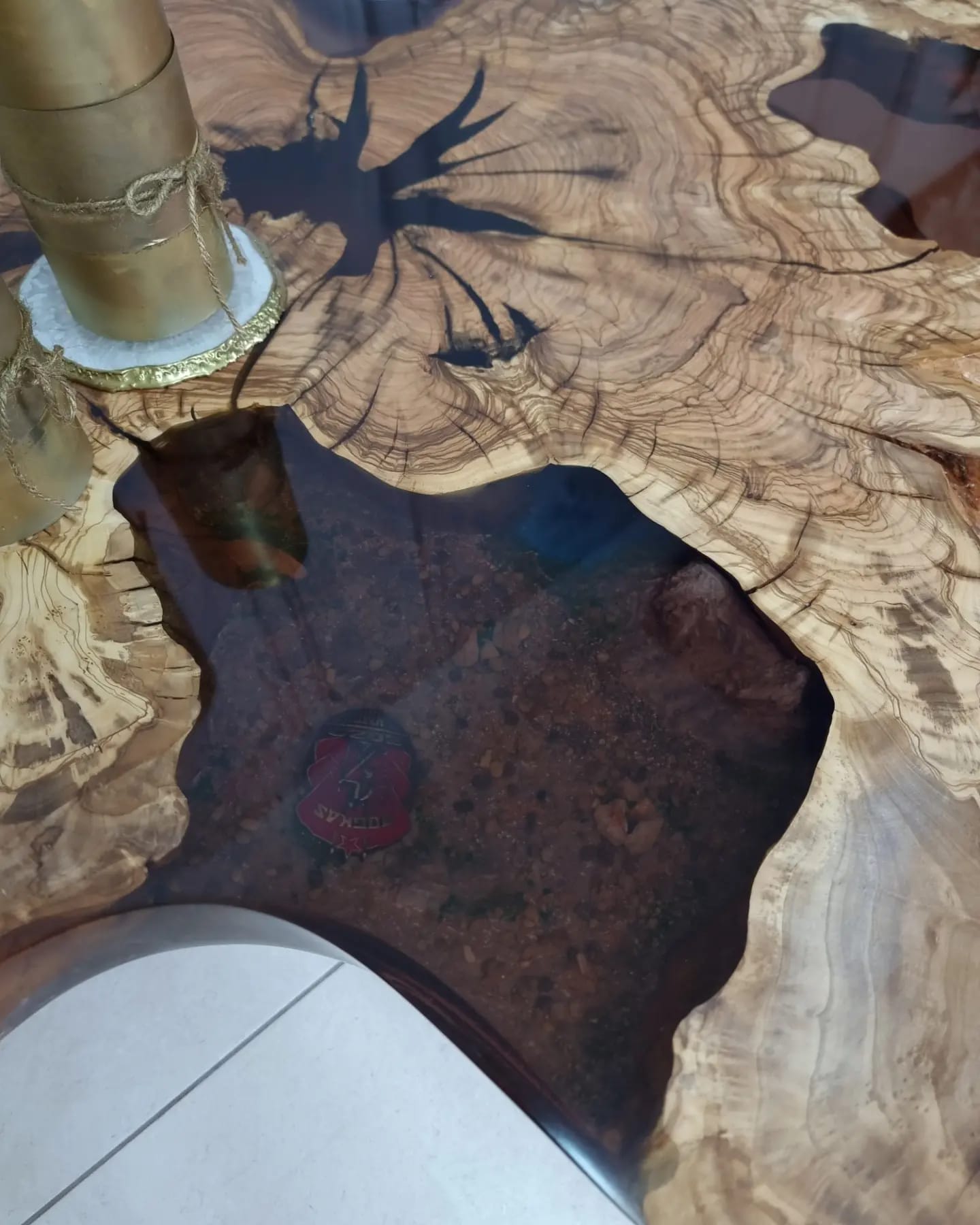 Τραπέζι από ξύλο ελίας και υγρό γυαλί